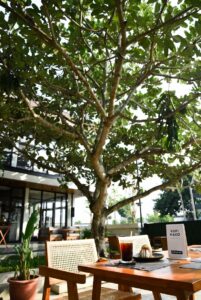 Kafe aesthetic dengan bangunan tinggi, pohon rindang, dan suasana tenang teduh. Cocok buat me time, foto Instagramable, atau ngobrol santai. Harga sangat ramah kantong.