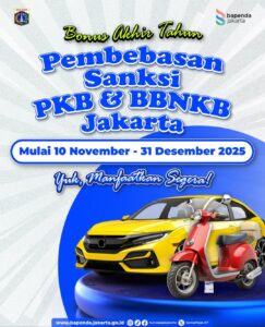 aroundCibubur.com – Pemerintah Provinsi (Pemprov) DKI Jakarta kembali memberikan keringanan bagi para pemilik kendaraan bermotor. Melalui program pembebasan sanksi administratif Pajak Kendaraan Bermotor (PKB) dan Bea Balik Nama Kendaraan Bermotor (BBNKB), warga Jakarta yang masih memiliki tunggakan pajak kini bisa melunasi kewajibannya tanpa dikenai denda.