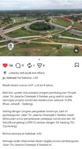 Dikutip dari akun Instagram jjs_tollroad, progress pembangunan sudah mencapai 74,9 %. Warga berharap jalur ini sudah bisa digunakan saat mudik lebaran 2026 nanti.